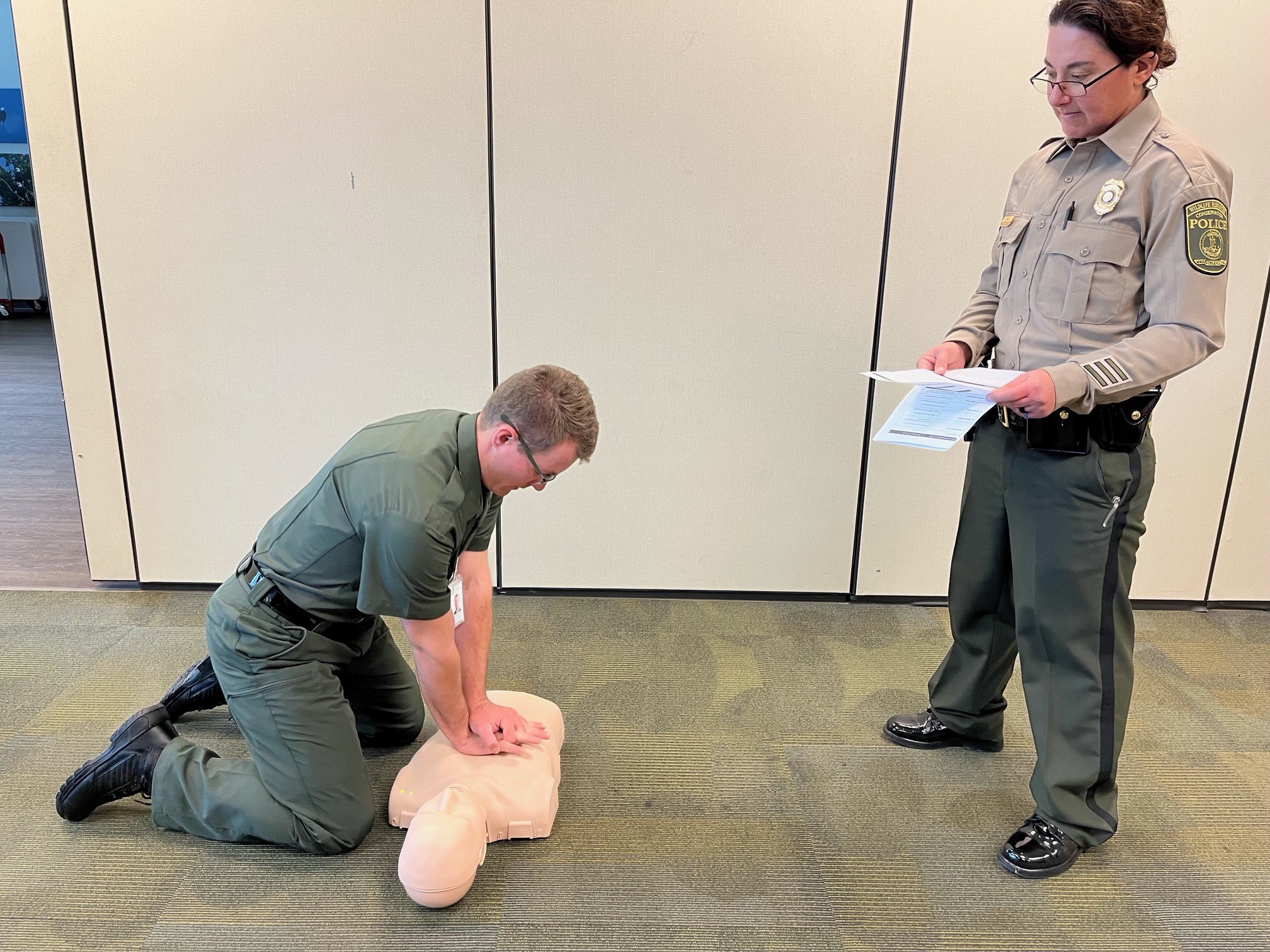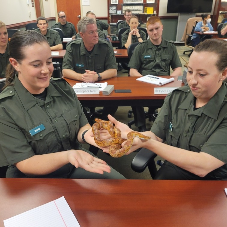 第 12 屆基本保育警察招募班於 1 月 25 日開始了 26 週學校。新兵將接受有關弗吉尼亞州野生動物資源部(DWR)歷史、該機構各部門和工作、野生動物基礎知識、急救、水禽識別、採訪和審訊以及防禦策略等課程。