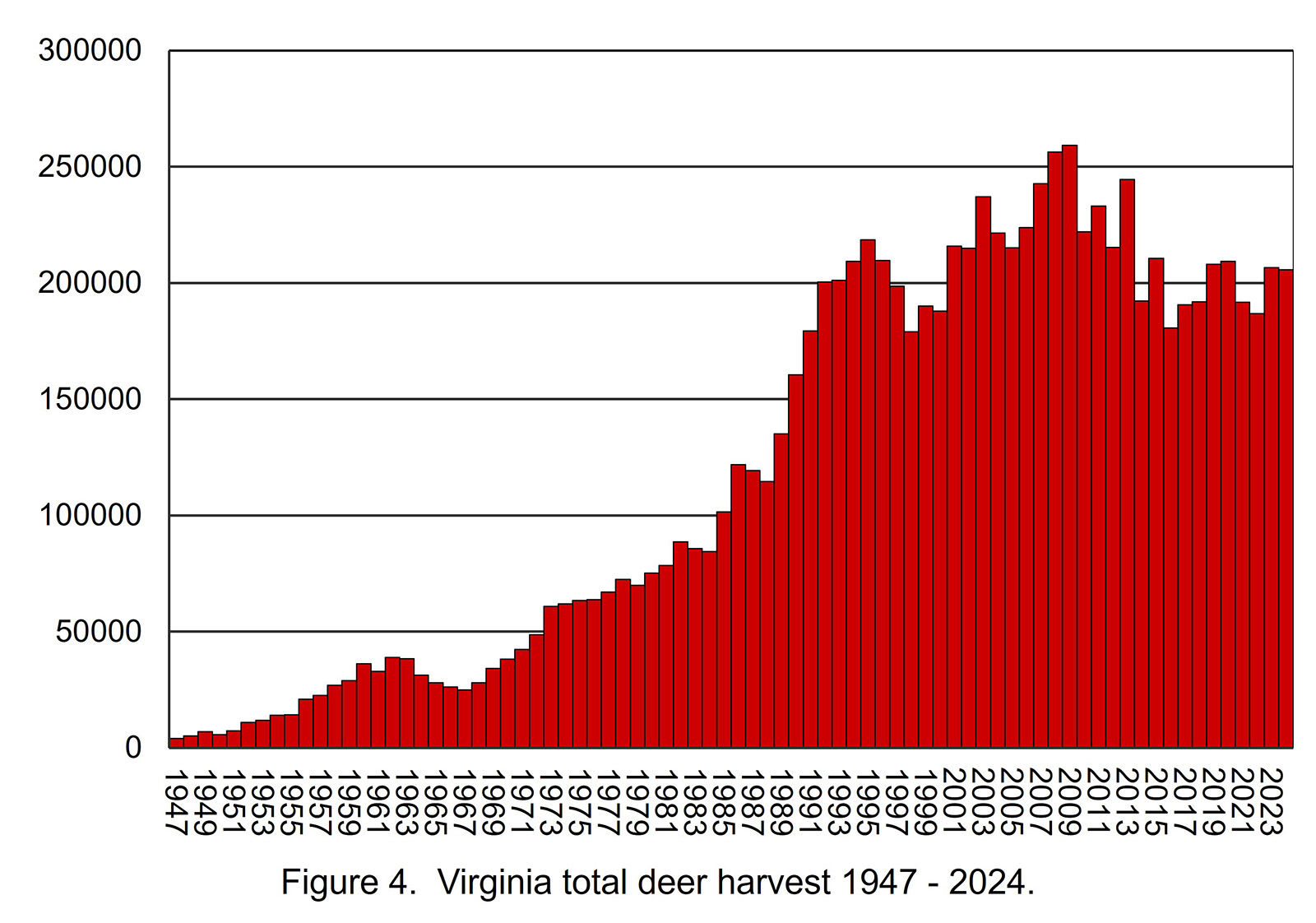 過去的經驗表明,每年鹿收穫總數的上升和下降部分是由於骨架狀況和/或 HD 爆發而歸因,我們都無法預測這些情況。在食物不良的多年中,鹿收穫通常會增加。多年來,鹿的收穫通常會降低。去年的作物很有斑點,而且我們得到了相對不錯的鹿收穫。