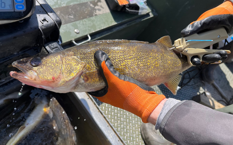 作為釣魚者利用研究的一部分,DWR 漁業工作人員對角膜白斑魚進行了標記,並要求捕獲帶標記角膜白斑魚的釣魚者告訴他們,以獲得 $ 20獎勵。閱讀更多...