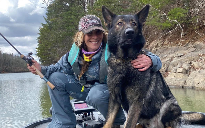 Terri Davis 正在與她的狗 Ruger 一起在弗吉尼亞州奇爾豪威貝斯錦標賽釣魚場景上發揮了很大的熱潮!閱讀更多...