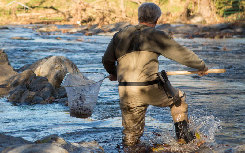 生物學家在南福克霍爾斯頓河上進行電捕魚