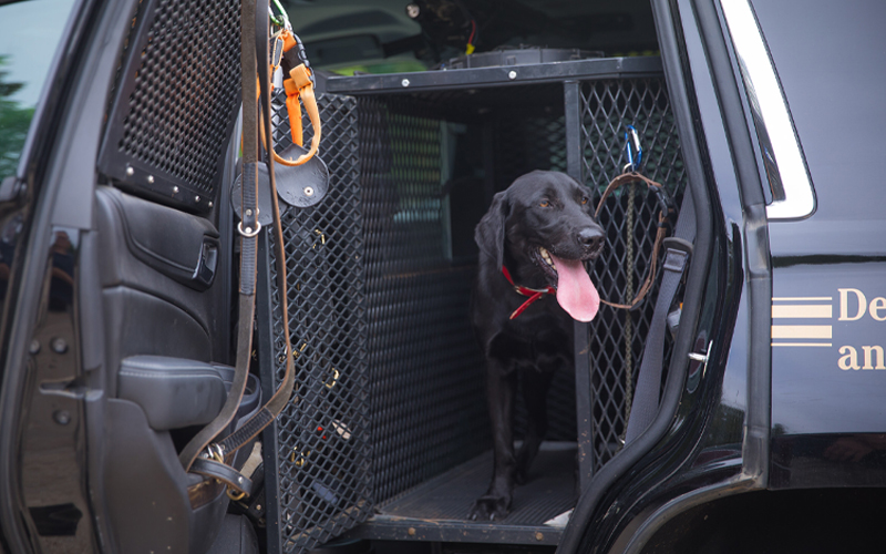 野生動物資源署 K 9 保護警察的狗狗在 K 9 車輛內保持安全和涼爽。閱讀更多...