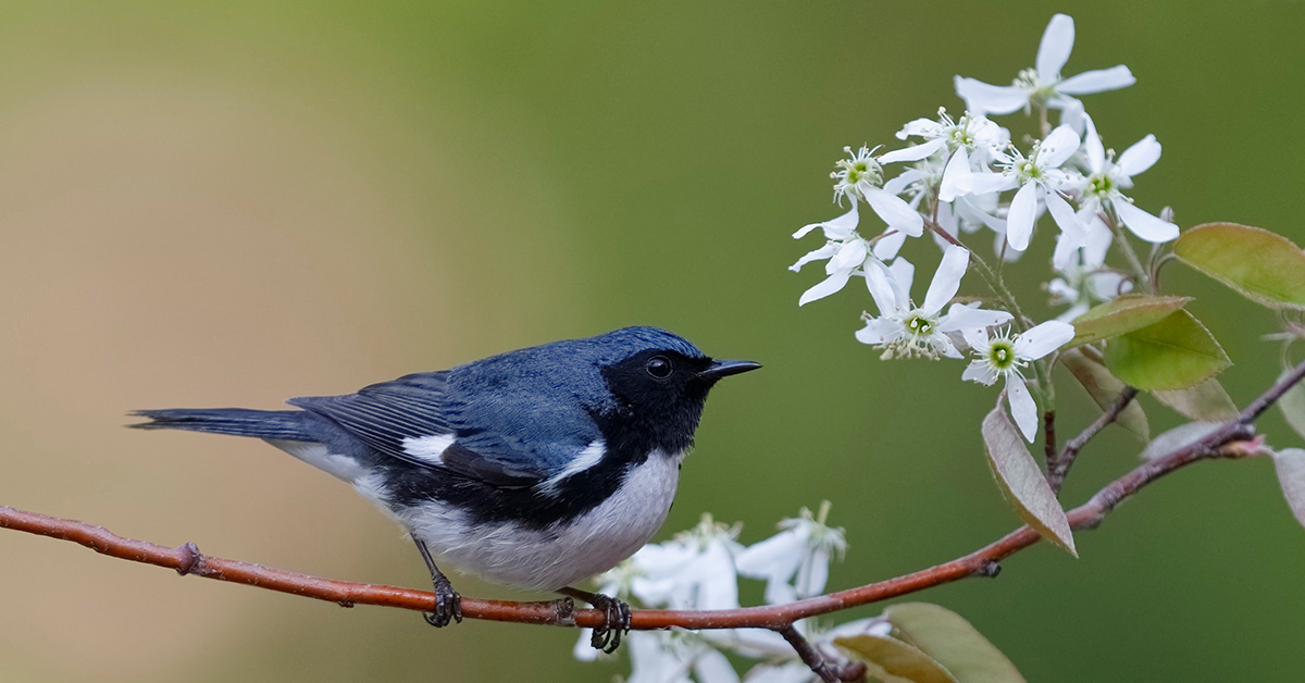 西洋莓是一種開花的灌木,被各種野生動物和鳥類使用,例如這種黑喉藍鳥。照片來自 Shutterstock