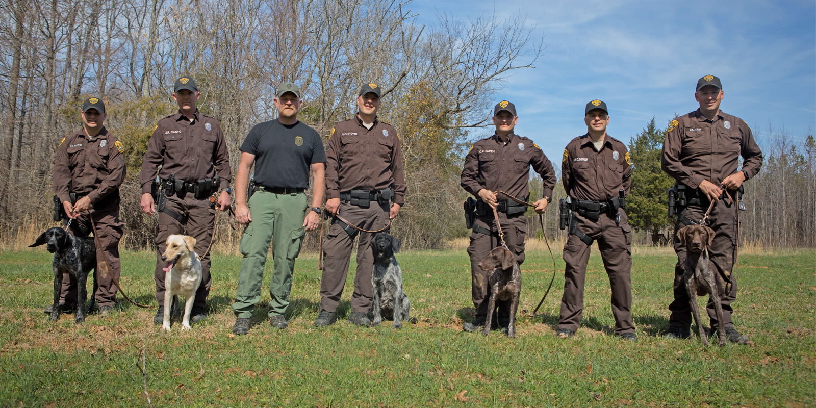 弗吉尼亞保護警察 K 9 理查德·霍瓦爾德中士(中)正在為西弗吉尼亞州 DNR K 9 計劃訓練六名 K 9 警官和狗。