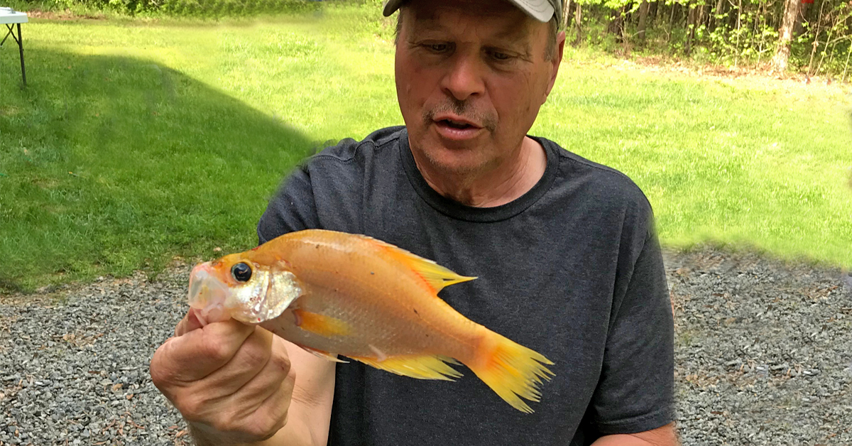 「金鯽魚極為罕見,大多數釣魚者從未見過,更不用說聽說過了,」弗吉尼亞州野生動物資源部 (DWR) 水生教育協調員亞歷克斯·麥克里卡德 (Alex McCrickard) 說。「魚是基因突變的產品,它會改變稱為黃原蛋白的皮膚色素。黃色色素沉著主導於黃色素沉著,如您可以在拉斯本的金色斑點中看到的那樣。」