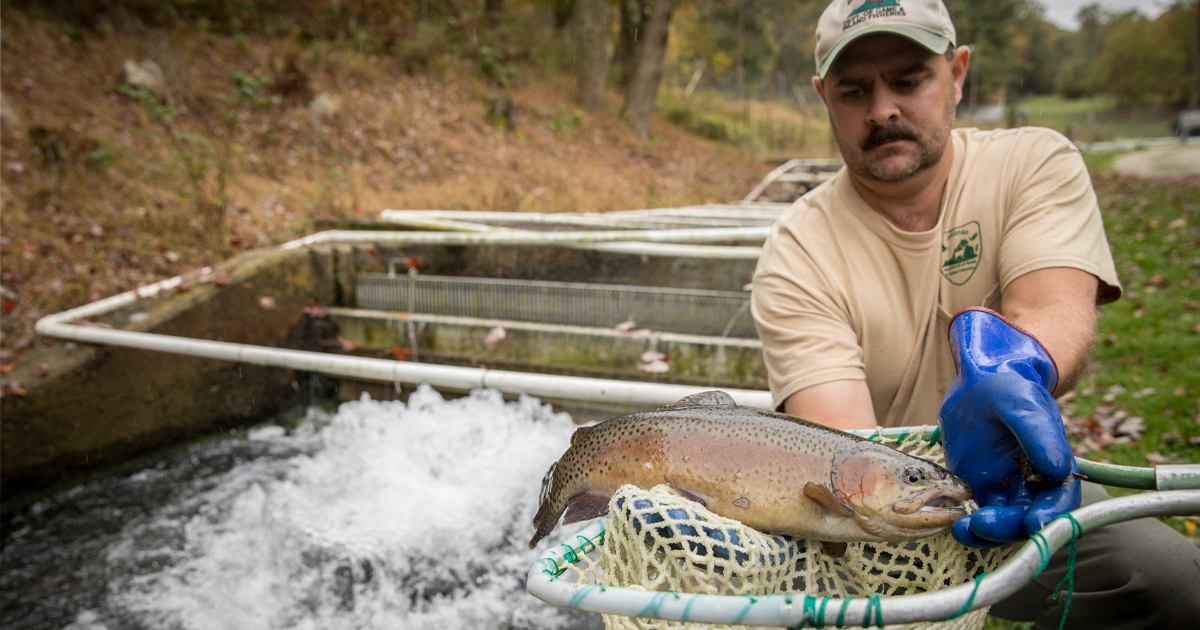 對於飼養魚的人來說,最終目標是擁有健康、豐富的魚群供釣魚者享受。無論是在弗吉尼亞州西南部用飛蠅釣法捕獲的美麗虹鱒魚,還是在弗吉尼亞州東部的湖泊中釣到的條紋鱸魚,這些魚都很有可能在 DWR 孵化場中度過成長時光。