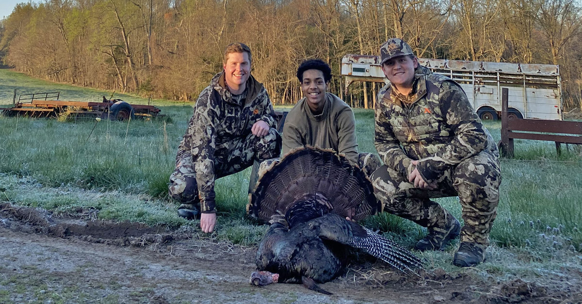 幾分鐘後,不是一隻,而是兩個成熟的食者出現在樹林邊緣,就在一個電動牛圍欄後面。當鳥類移動到 35 碼以內的時候,納泉準備好射擊其中一隻鳥。日出後,Na'Quan 收穫了他的第一個火雞,重量為 23。26 磅(加 10)。5 英寸鬍鬚和大約 1 英寸刺。當我們站在雄偉的鳥旁邊時,我問 Na'全:「你感覺如何?」他大眼睛,微笑大,回答:「我有一隻火雞!」