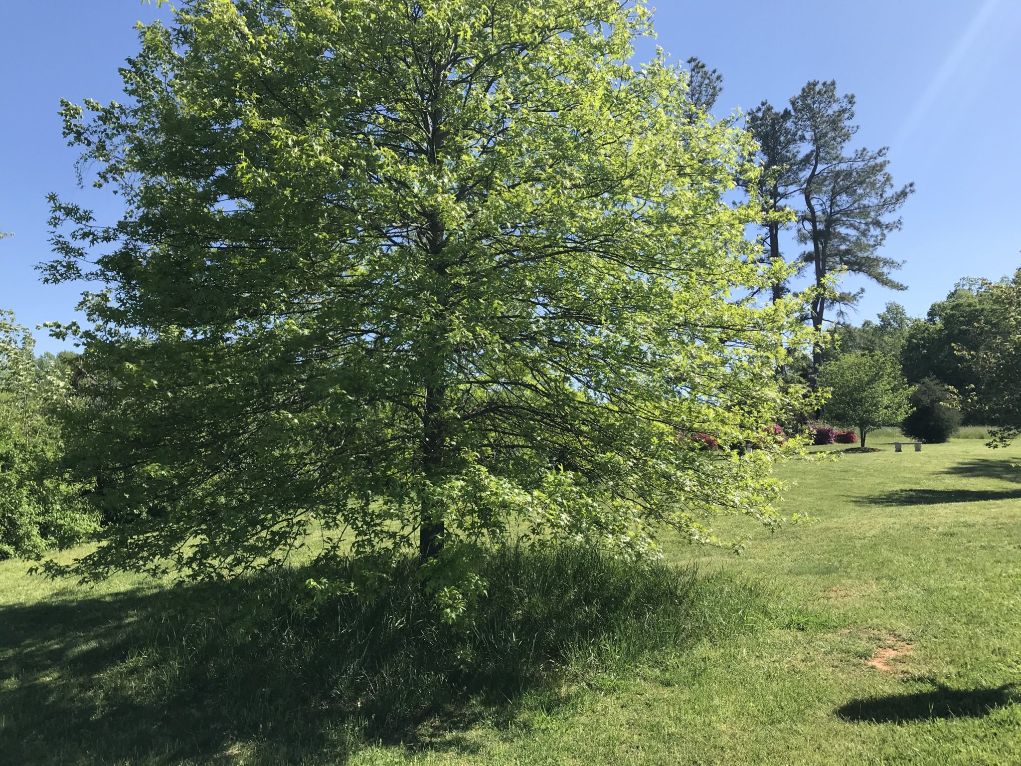 這張我的橡樹的照片顯示了我如何避免這樣做,現在每年都允許一片遮蓋在它下面生長。我少割草,割草時不會把頭打在樹枝上,而且欣賞經常躲在這棵樹下的動物,包括一年一年幾天的鹿野鹿。我在我的幾棵果樹上做過同樣的事情,並且多次看到它們下面的小兔子。冬天,我在這些樹下散播一些鳥種子,讓鳥類在遮蔽處餵食。