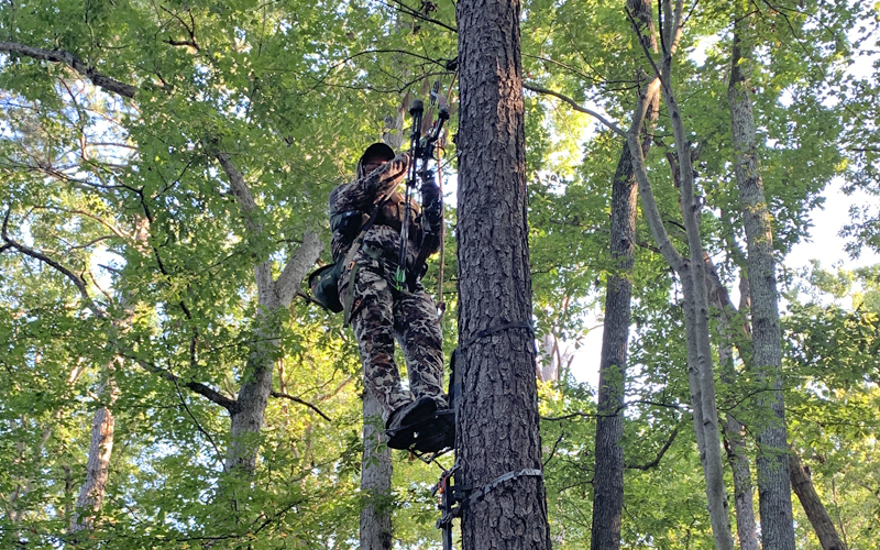 與馬鞍狩獵絕對有一個學習曲線相關。上升和降低都需要練習。我開始是觀看 YouTube 視頻,講述其他獵人如何上下樹,然後將這些學習的學習帶入田野。我發現,創建一個系統,每次都將所有攀登設備保持在同一個地方,並練習對於安全而安靜地上樹至關重要。