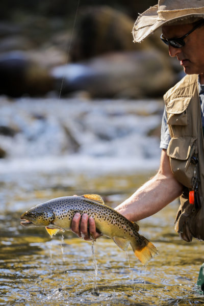 "他說:「這裡有極佳的原生溪鱒種群,雖然種群數量每年會因產卵成功與否而有所不同。「這裡確實會有一些壓力,但有很多空間可以避開其他垂釣者」。