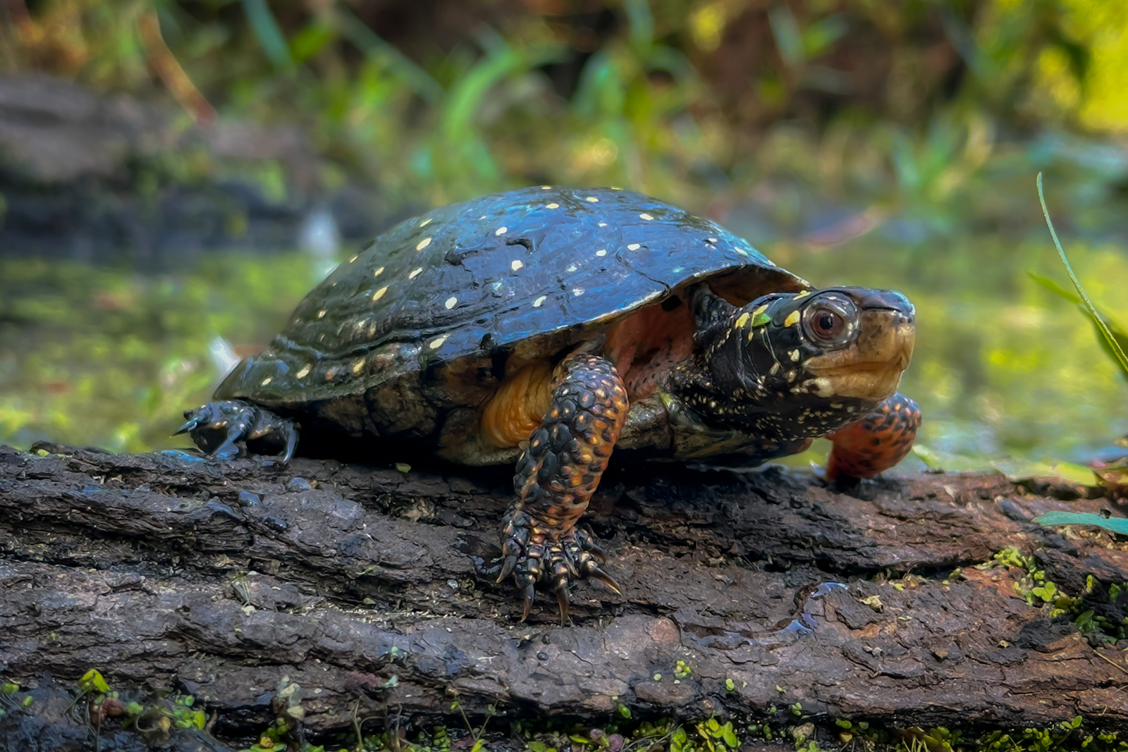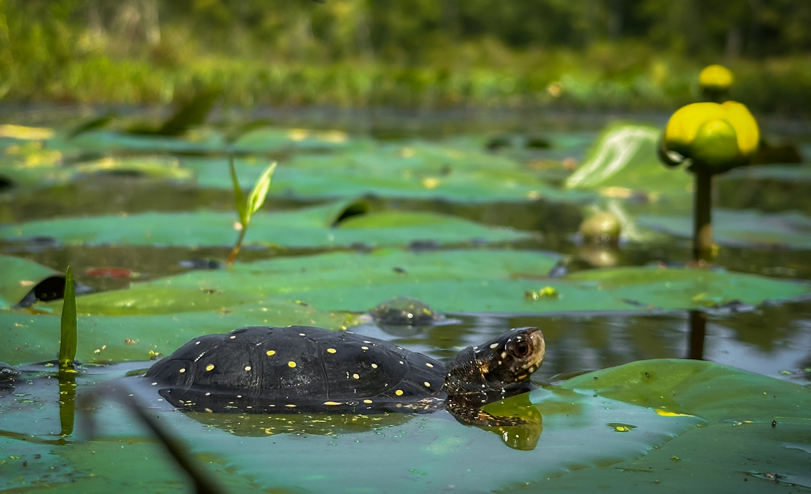 根據 Kleopfer 的說法,斑斑海龜是弗吉尼亞州最需要保護的物種,是非法寵物貿易收藏家來狩獵並最終發送到國外出售的流行物種。「它們很小,它們很炫目,它們是個人氣的烏龜,」克萊奧弗說。「不幸的是,很多被目標的地區都是公共土地,例如避難所,因為這裡可能是最健康、最大、最強大的斑龜群的地方。不幸的是,在公共土地上,您往往會發生很多非法活動的地方。帶著背包遠足夠容易,沒有人會對您再思考。而在私人土地上,這是一個不同的故事。」