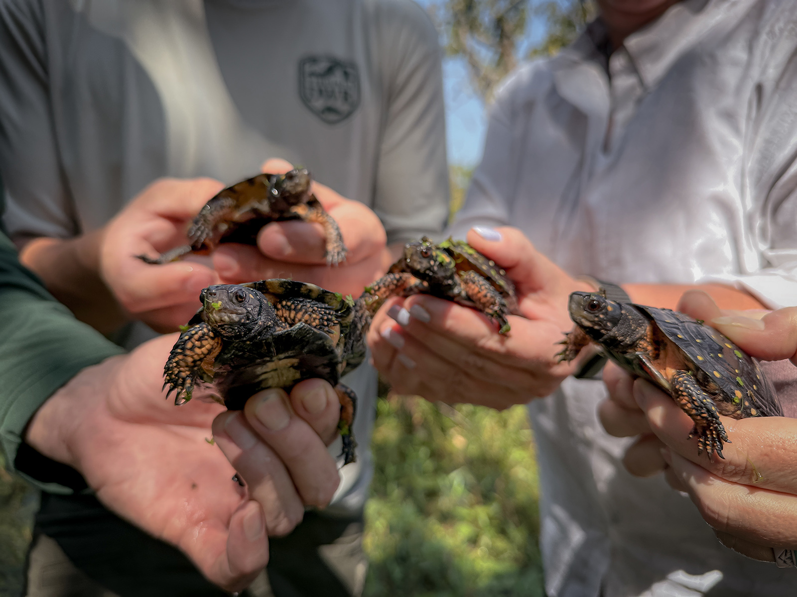 8 月,克萊奧弗抵達,將斑斑龜送到他們的新家。他承認,當他看著他們在原木上爬上並游走時,他感到「難過而不是興奮」,克萊奧弗說。「很遺憾,因為有人從弗吉尼亞州狩獵了他們,但同時看到這八隻動物回來的同時令人興奮。不幸的是,可能有許多被捕獵的烏龜永遠無法回來。」