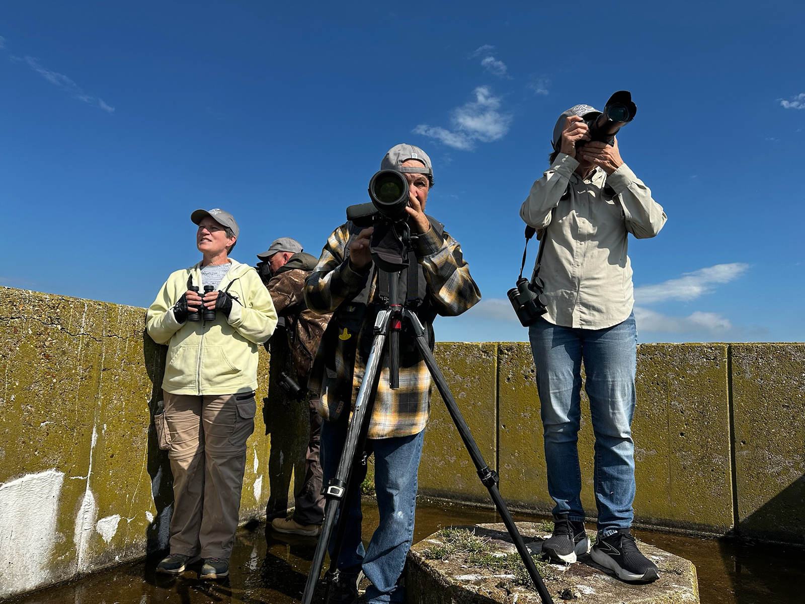 2024 弗吉尼亞鳥類經典賽的獲勝隊伍特奇隊([左起] 史蒂夫·邁爾斯、艾米·梅耶斯、朱恩·麥丹尼爾斯和安德魯·巴德利),因為他們的勝利,在沃爾堡海鳥巢地享受了一天的觀鳥。