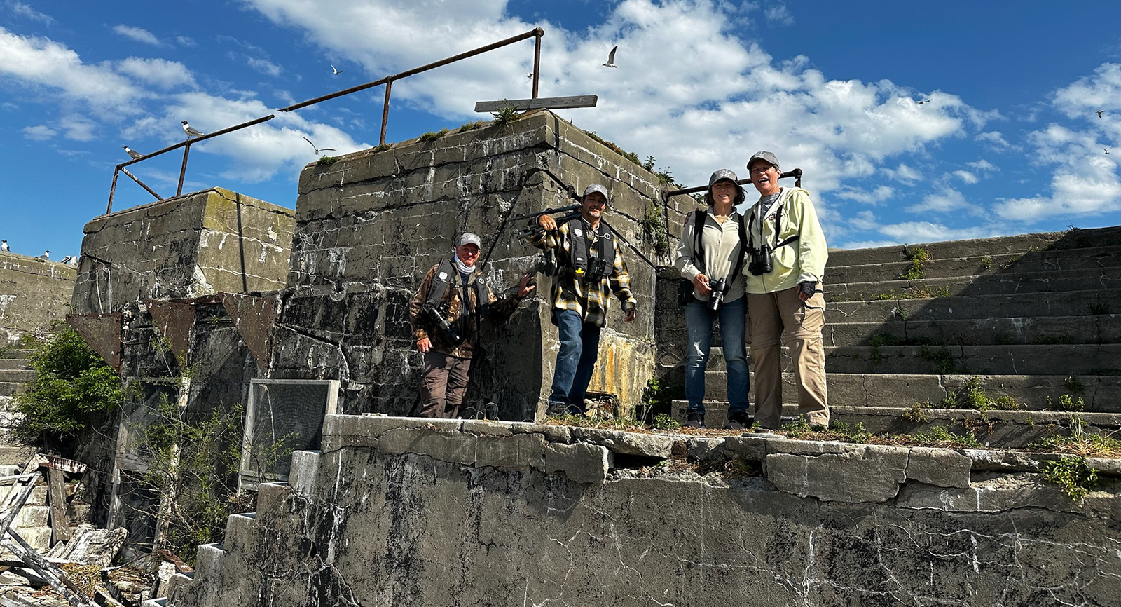 獲勝的四位野生動物觀察者獲得了選擇 DWR 野生動物體驗的機會,他們選擇參觀 Fort Wool。2025年 5 月,DWR 的 David Norris 和 Max Goldman 陪同這四隻鳥參觀了島上的築巢地。
