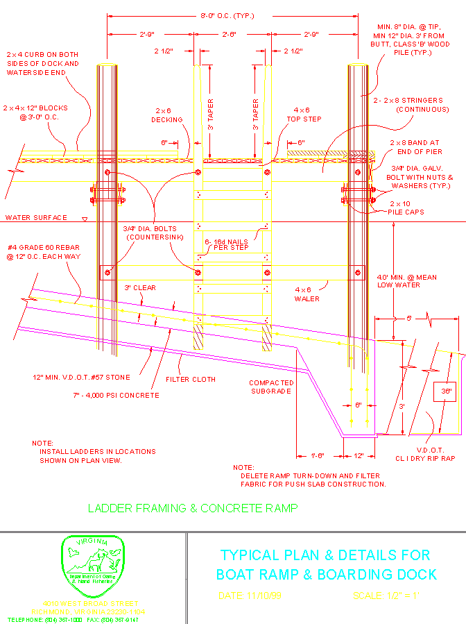 找到船坡道的地點之後,請充分了解您想要如何建造船坡道以準備草圖。下一步是申請必要的許可證。維吉尼亞州海洋資源委員會、工程兵團、州水資源控制委員會和當地濕地委員會可能需要許可證。某些地方也需要當地建築許可。要了解需要哪些許可證,請聯繫Virginia Marine Resources Commission(地址: 2600 Washington Avenue,Newport News,Virginia 23607 ,電話號碼: 757-247-2200 )和您當地的建築檢查員。