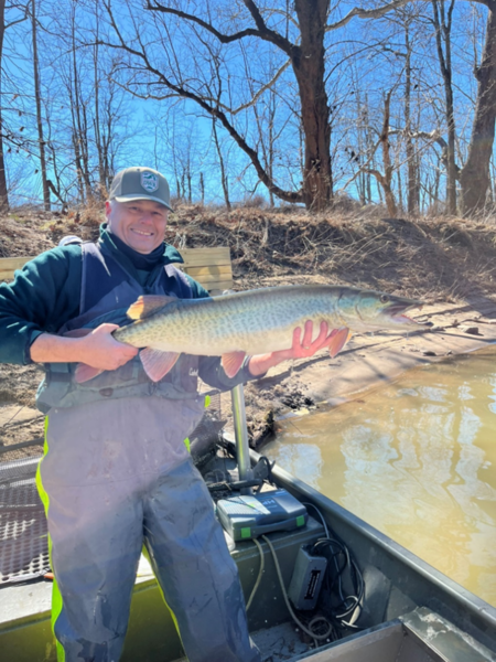 不幸的是,扁頭魚被意外或非法引入河流。生物學家從沃倫水壩到 50 路橋發現了成年人和野生產的個體。平頭人口持續擴大,尤其是在主幹的上層。捕獲率由第一次發現時的 2021 每小時不到一隻魚,在 2024 的捕獲率增加到每小時四個魚。生物學家將在未來幾年繼續仔細監控人口。