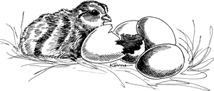 雞蛋(離合)每天分卵一次。嵌套所需天數的大部分變化都是由於離合器大小。雞蛋的重量通常在 10 至 15 之間,但可能高達 20。通常,每個卵巢的數量隨著後續的每次巢穴努力下降。在弗吉尼亞州巢穴研究中,子的平均量產生 13 卵,介於 9 至 19 之間。孵化需要 23 天。