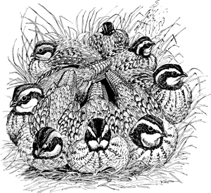 宿舍可能是唯一一個通常不需要密集的頂部遮蓋物的活動。有關使用小麥根、最近被燒毀的區域和收穫的豆田進行棲息的報告中證明了這一點。顯然,鳥類在躺下時的迷彩和不動動的狀態消除了頭上的遮蔽需求。開放的天空視圖也允許鳥在黑暗時無阻地沖水。棲息地通常是在裸露的地面上或只有輕微的污垢。裸露的表面可保持白天的熱量吸收,從而提供更溫暖的棲息地,讓晚上開始。由於同樣的原因,巢穴通常位於南或西南斜坡上,下午陽光直接照射並使地面溫暖。喜歡中斜坡或較低的地方進行棲息,可能是為了避免風向靠近山頂發生。