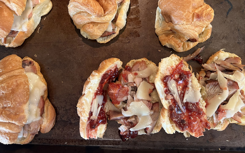 簡單的新月形鹿肉卷配布里和切碎開心果