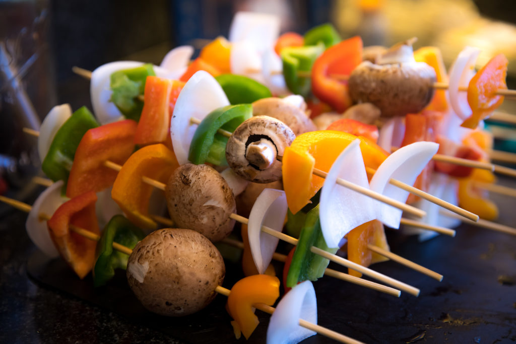 - 將所有蔬菜加入甘菊棒中,然後用橄欖油刷。撒上意大利調味料,大蒜粉,鹽和胡椒粉。