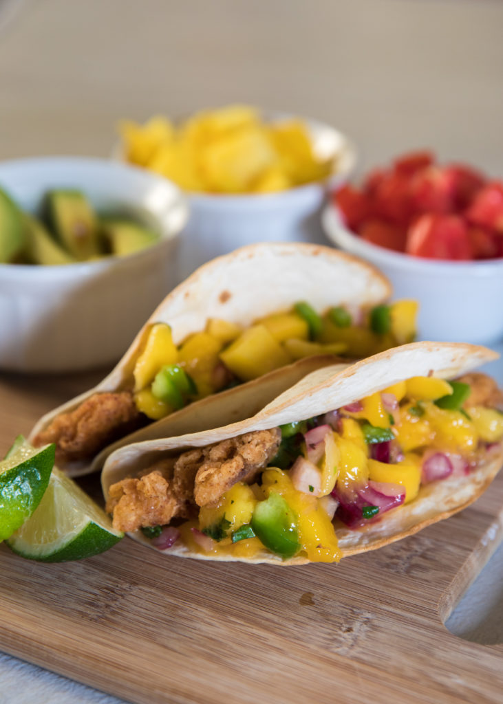 - 根據自己的喜好準備墨西哥夾餅,用您選擇的食材,然後再加上芒果莎莎醬!