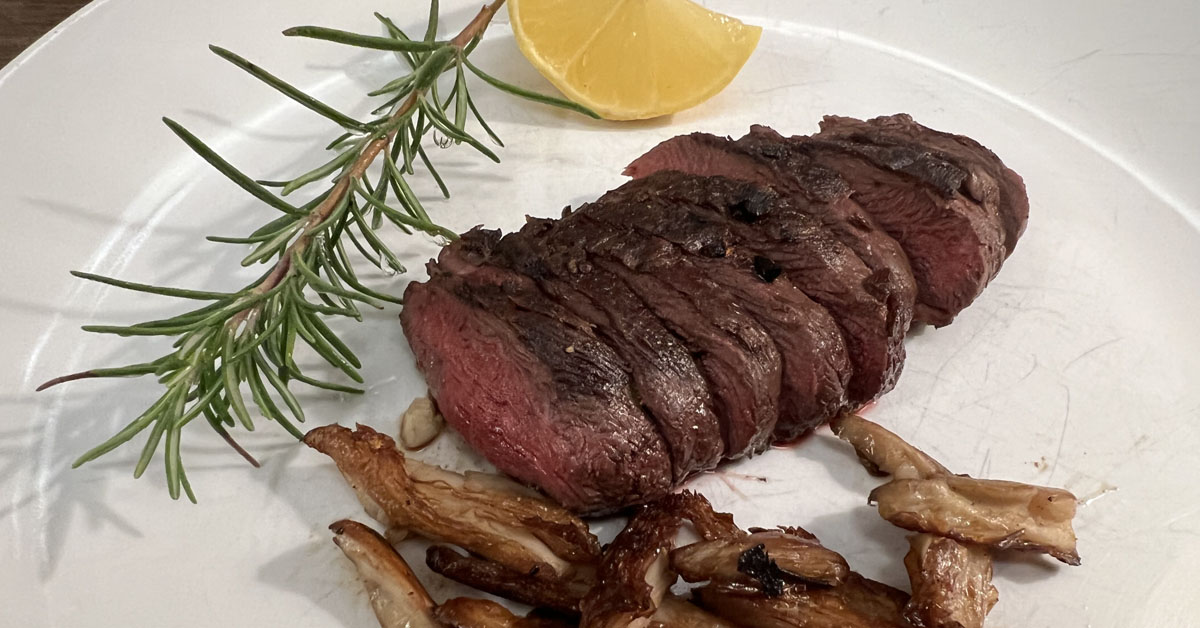 - 加入鴨胸,皮面向下。大約 5 分鐘後翻轉。烹飪時間會根據鳥的大小而有很大的變化,但是我用一隻平均大小的青草做到這一點,每邊花了大約 5 分鐘。我強烈建議使用即時讀取溫度計來檢查肉質熟度。我以 125 ⁰-130 ⁰ 拉動它,以稀有/中等稀有。