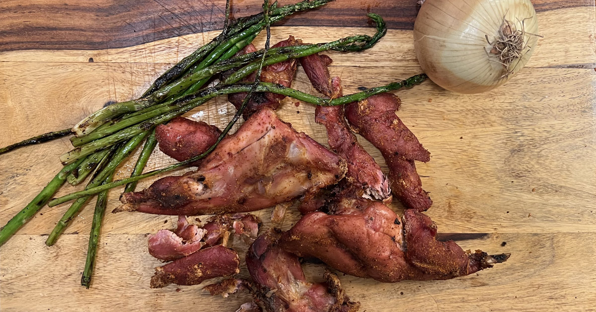 - 烤蘆筍配橄欖油,鹽,胡椒粉和辣椒粉是煙燻兔子的好配菜。