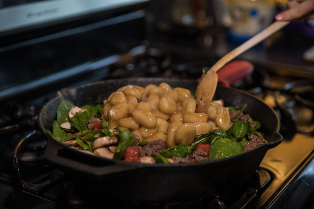 - 在煎鍋中,按照包裝說明煮牛肉,但用雞湯而不是水煮。