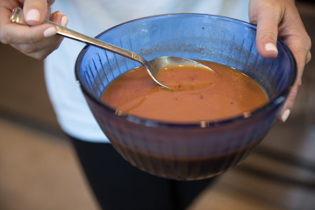 - 在迷你馬鈴薯卷滑桿上享用燒烤,並在上面加入綠菜沙律。淋上額外的燒烤醬。