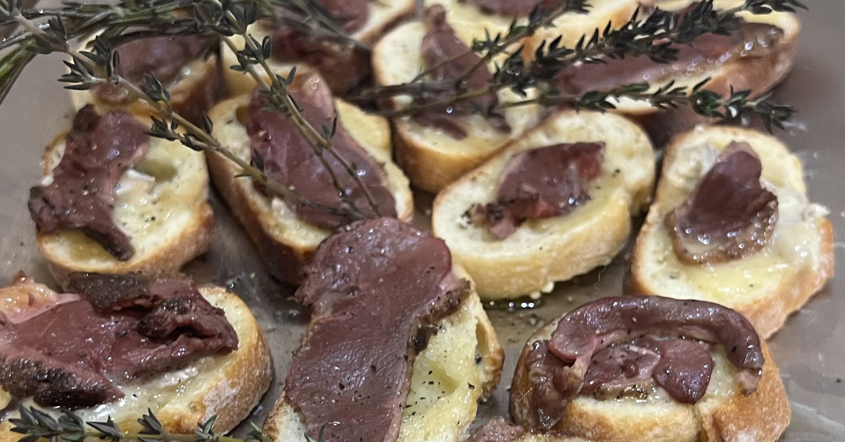 - 加入生牛肉片,然後將烤肉放入烤箱中一分鐘(或根據需要-或保持冷卻並在麵包烘烤完後加入肉)。