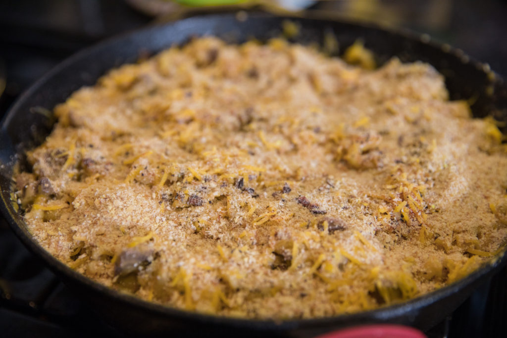 - 將麥克恩芝士加上麵包屑(但不要完全覆蓋麵包屑),然後放入烤箱中以 350 度放入 20 分鐘。混合/向下壓碎屑以塗上奶酪並使其變脆。