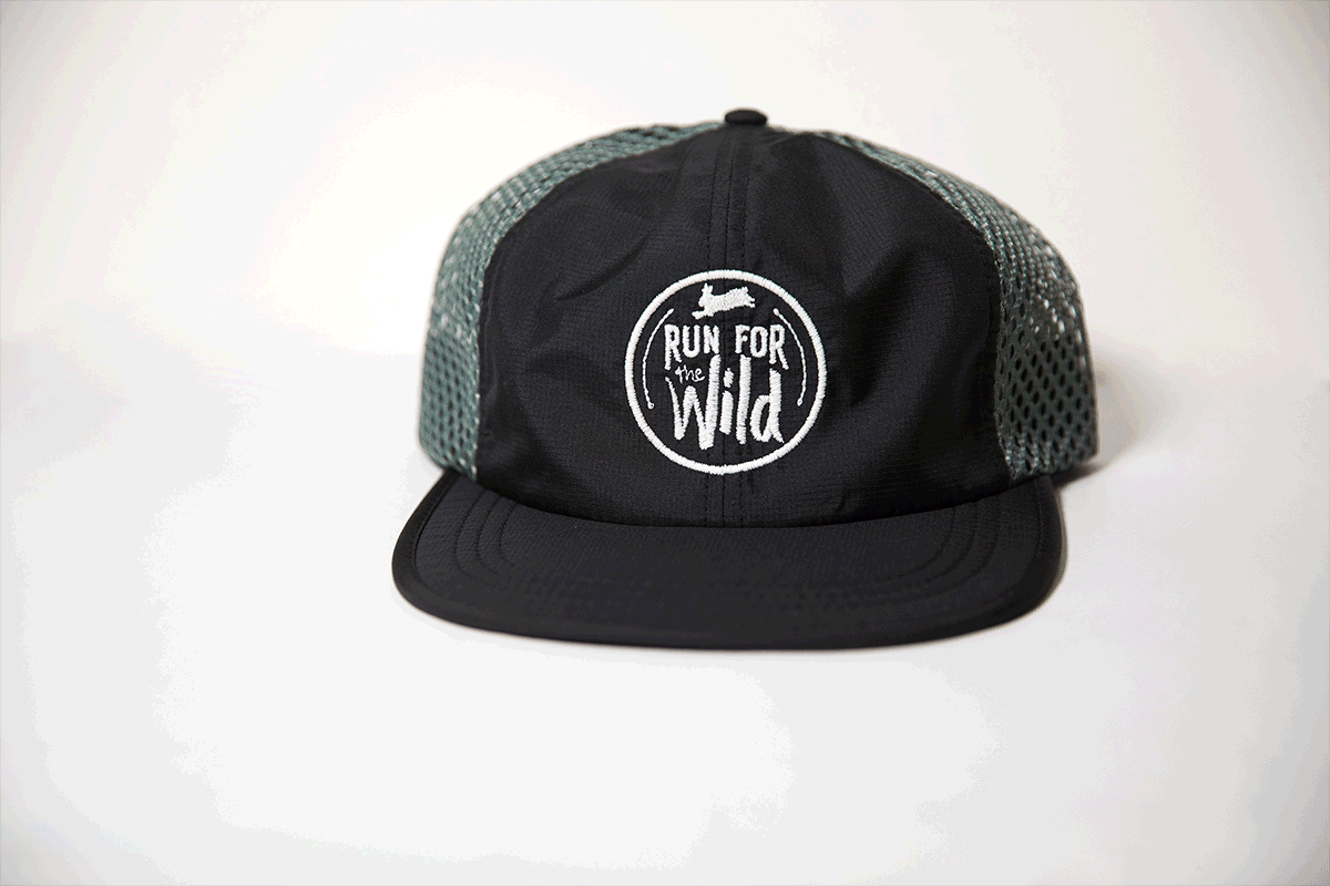 Run for the Wild 圖案採用黑暗中發光線縫製,在黑暗中亮起來。這款跑步帽為單一尺寸,配有快速調整背帶的織帶。價格包括運費,所有收益都用於我們的補助計劃。