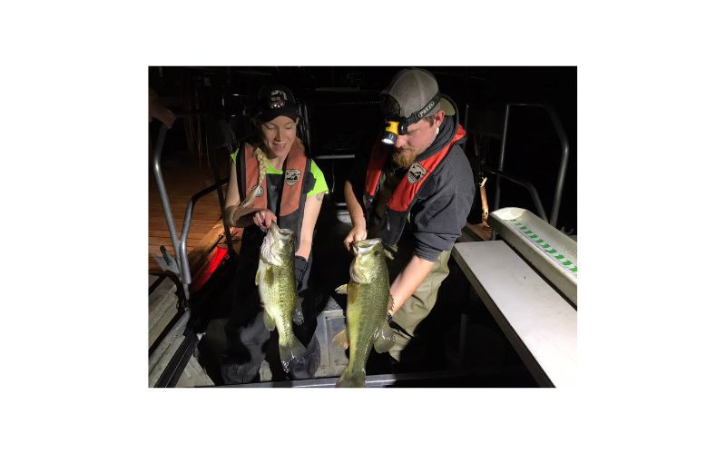 大口鱸魚數量極多,有許多2-4 磅的魚可供釣魚人垂釣。弗雷德里克湖歷史上一直在雪南多亞山谷生產了最優質的大南鴨漁業。近年來,釣魚者已從湖中釣到重達10 磅的鱸魚。繁殖情況看來很穩定,數量不錯的鱸魚12-18″ 佔了漁業的大部分。與來自較南方緯度的貝斯相比,弗雷德里克湖的大南部的生長率較慢。在弗雷德里克湖的貝斯需要大約 6 的生長季節才能達到 14 英寸。大口鱸魚的主要飼料是無數的小太陽魚、黑鱈魚和藍鱈魚。鯊魚是弗雷德里克湖相對較近期且不受歡迎的添加物。他們不是非法引入,就是意外引入。它們確實為鱸魚提供了絕佳的飼料魚類,但由於其浮游性質,它們會將大量鱸魚從湖岸吸引到湖中較深的盆地。這使得岸釣者很難瞄準大口魚,而船釣者則不得不嚴重依賴電子設備來定位魚群。在夏季的幾個月中,夜間垂釣也會很有成效。一些最大的鱸魚是在三月和四月的產卵前期捕獲的。