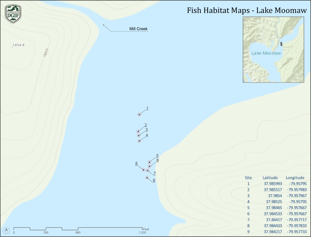 穆莫湖是維吉尼亞州第二大水庫。它覆蓋 2,530 的表面英畝,最大深度為 152 英尺。截止水平在每年 10 至 15 英尺之間「下降」,從 6 月開始緩慢,通常在 9 月至 9 月達到最低水平。有 43 英里的未發展的樹木海岸線。