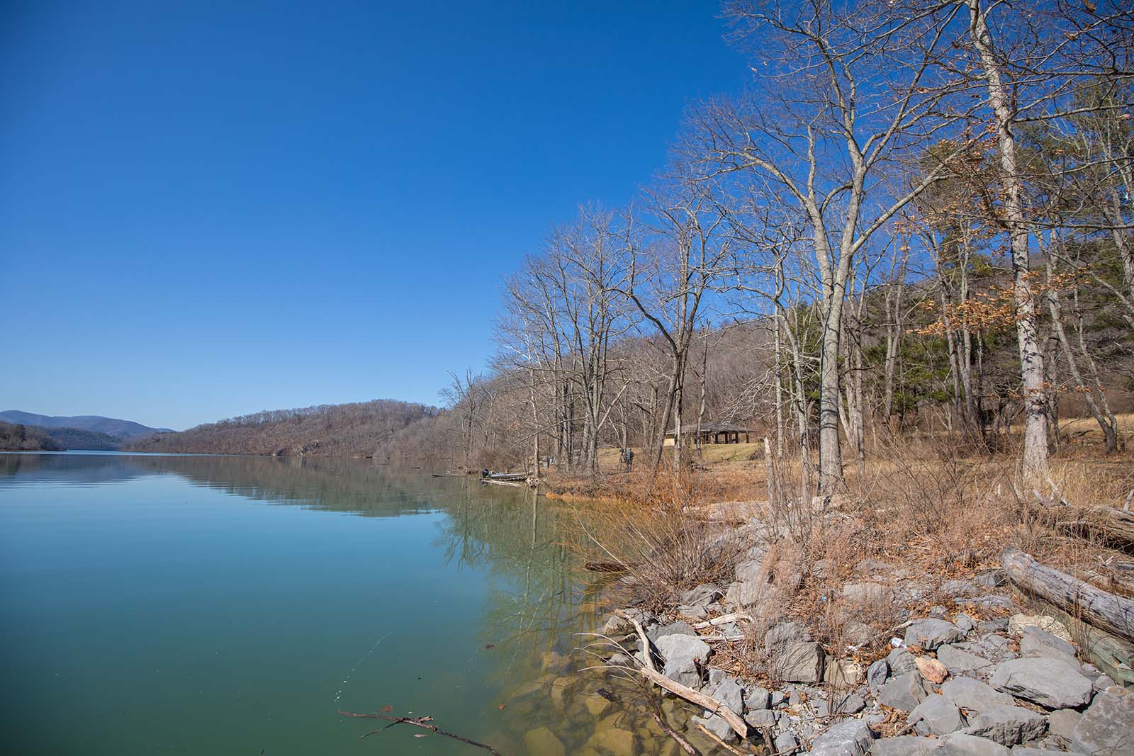穆莫湖是維吉尼亞州第二大水庫。它覆蓋 2,530 的表面英畝,最大深度為 152 英尺。截止水平在每年 10 至 15 英尺之間「下降」,從 6 月開始緩慢,通常在 9 月至 9 月達到最低水平。有 43 英里的未發展的樹木海岸線。