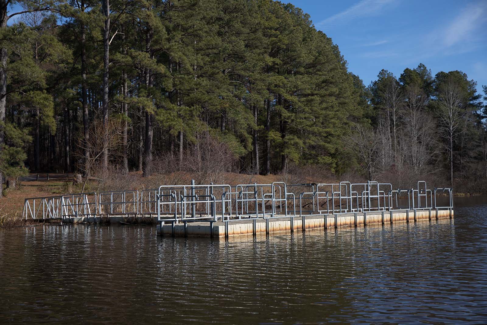大型停車場為所有釣客提供充足的停車場。在水壩面面的漁碼頭和停車場兩端的釣魚徑設有銀行。船坡道全年開放,湖泊歡迎夜間釣魚。