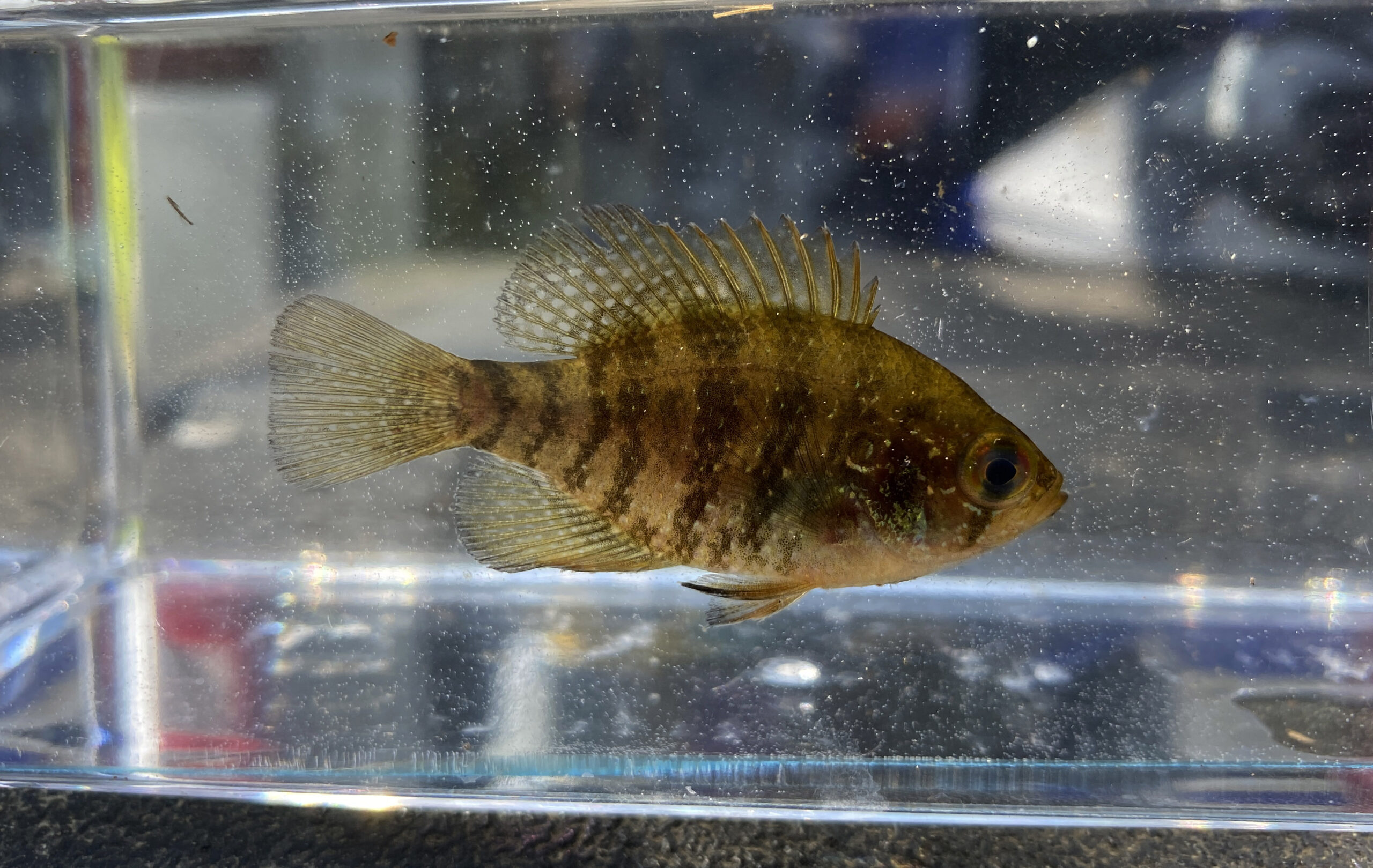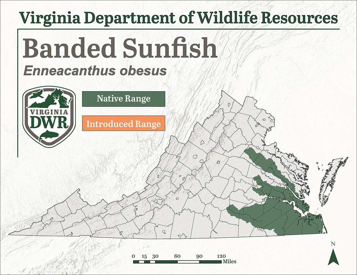 尺寸:帶狀太陽魚在弗吉尼亞水域中很少超過 3 英寸的長度