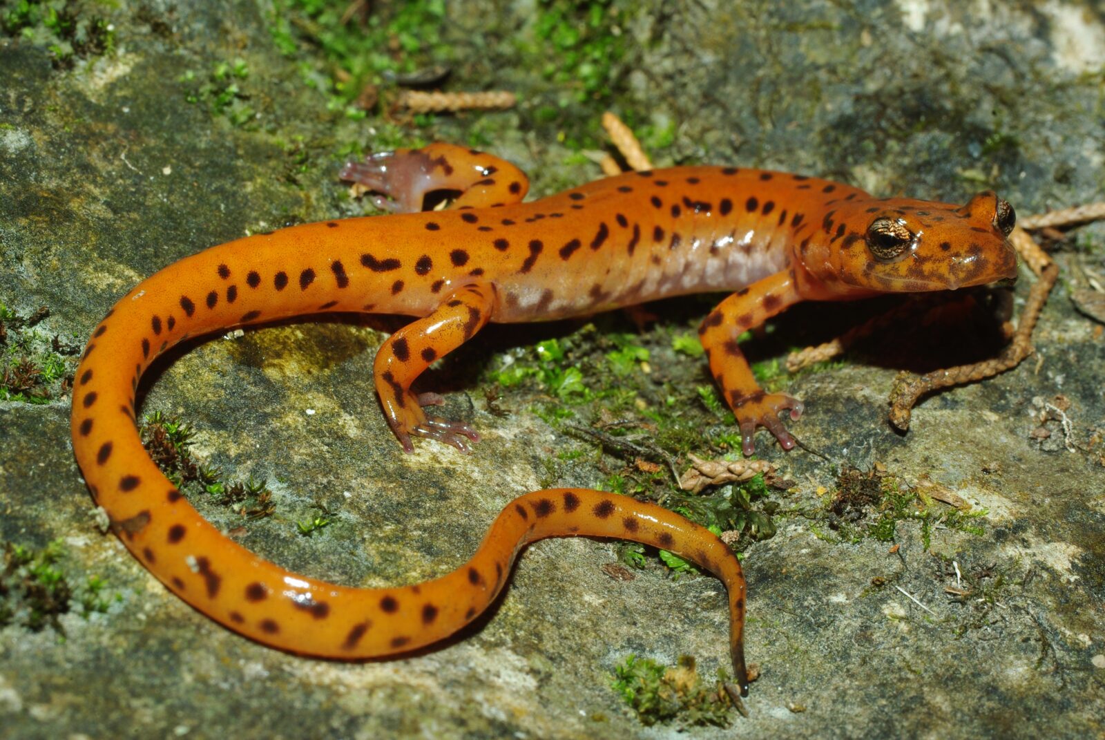 洞穴 Salamander 是橙色到橙紅色的大山鼠,背面和側面有小黑點。尾巴可以超過總體長度的一半。頭比長尾薩拉曼德更寬,扁平,腿更長。