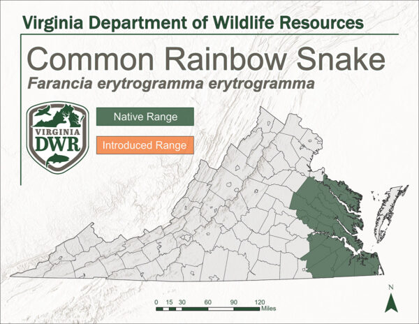 在維吉尼亞沿海平原發現的一條幼年普通彩虹蛇。圖片 © 邁爾斯·馬斯特森