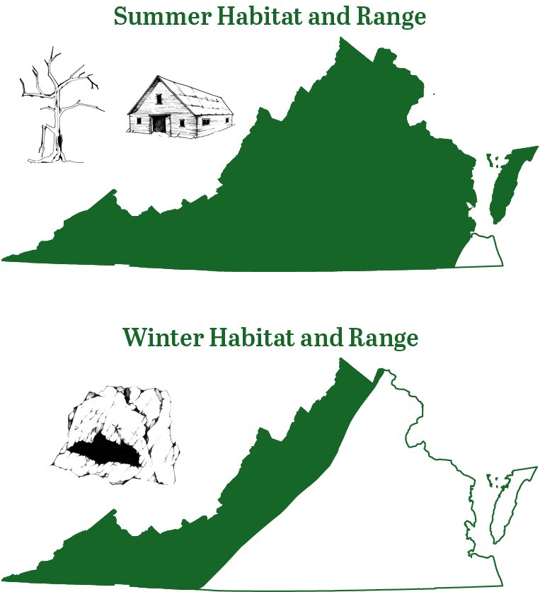 小棕色蝙蝠是白鼻綜合症爆發之前,弗吉尼亞州最常見的蝙蝠之一。成人大約測量 3。2-3。8長度為英寸,重量為 0。2-0。45盎司。這隻小棕色蝙蝠的大小與該地區的許多其他蝙蝠相似,翅膀寬為 8。7-10。7英寸。它可以與其他肌炎區分,因為它的大腳和毛皮粗糙的腳趾。背部的毛皮為深棕色,下面的顏色從灰色到白色更為淺。
